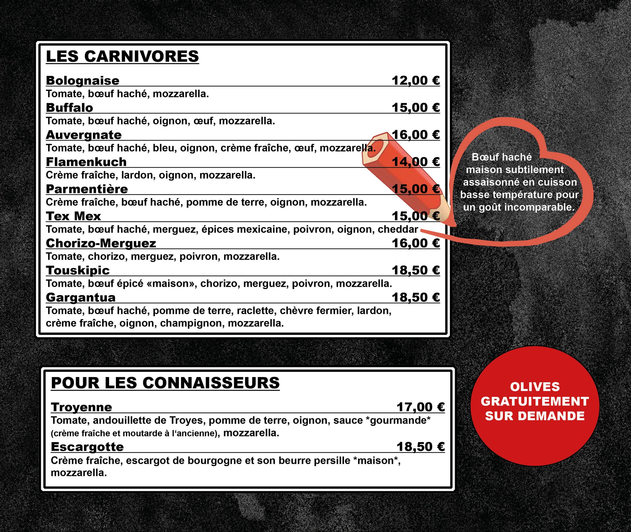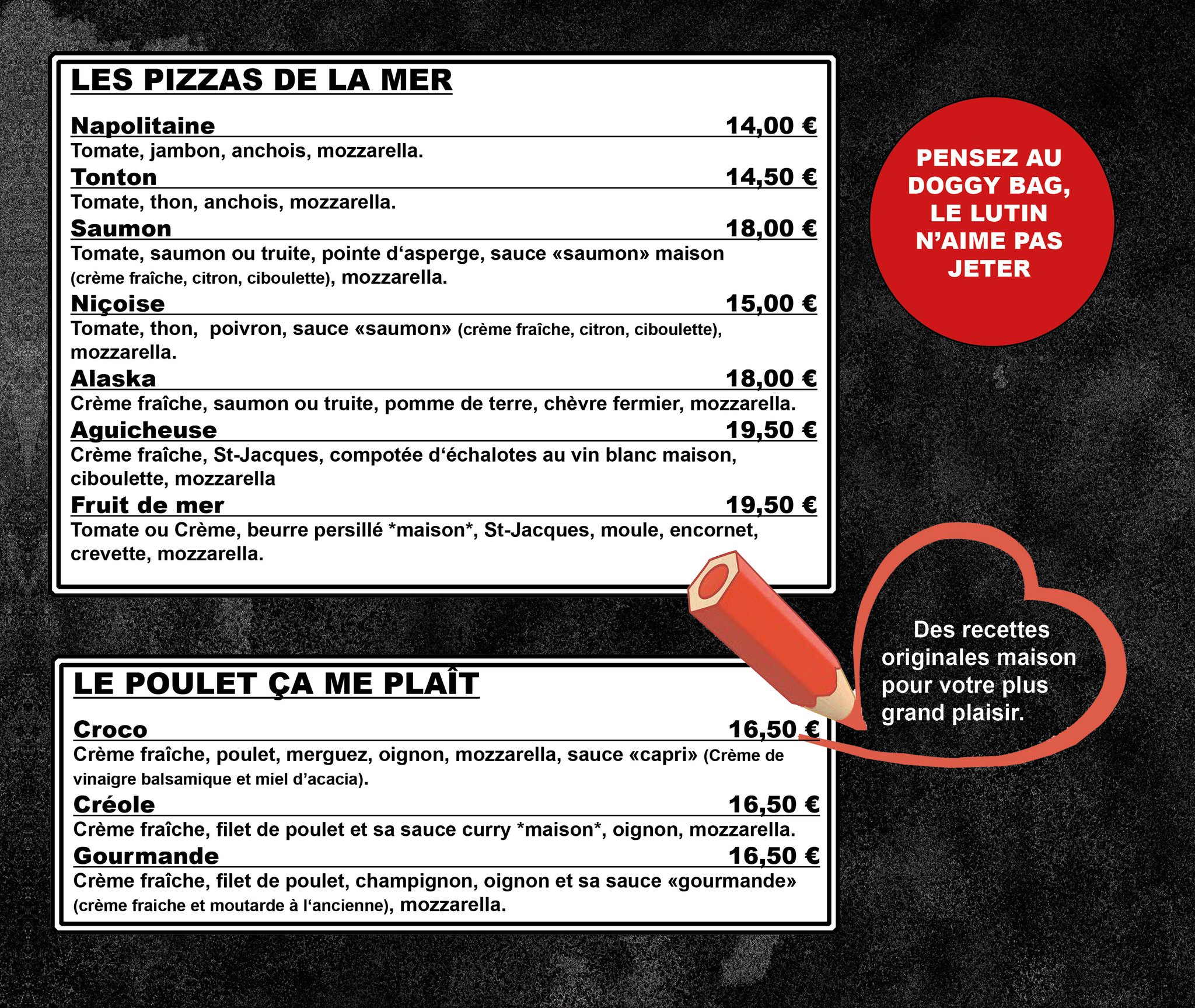 Tous nos prix sont en euros ttc et peuvent être modifié sans préavis.